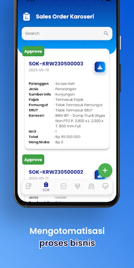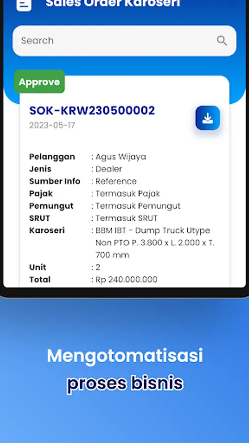 Latto MTU Mobile is an application for managing all operational activities of a car body company starting from making offers, sales orders, warehouses, invoices and is equipped with modules to facilitate the data validation process with the Paperless application.