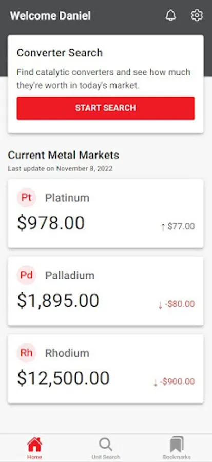 Prices update daily and are based on current platinum, palladium, and rhodium markets.