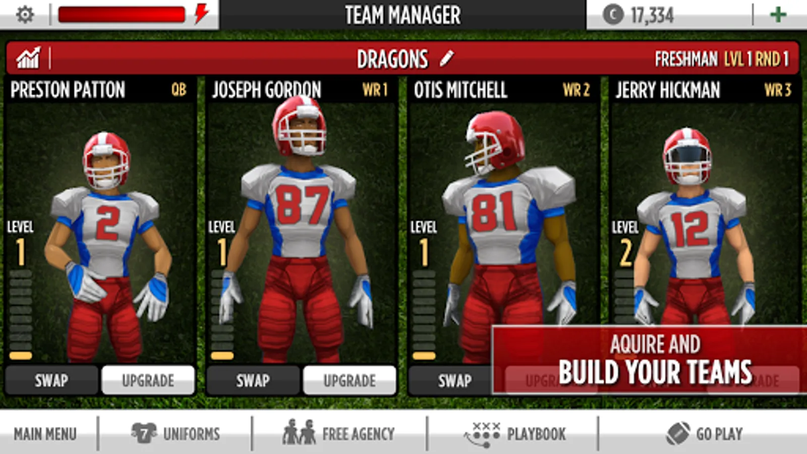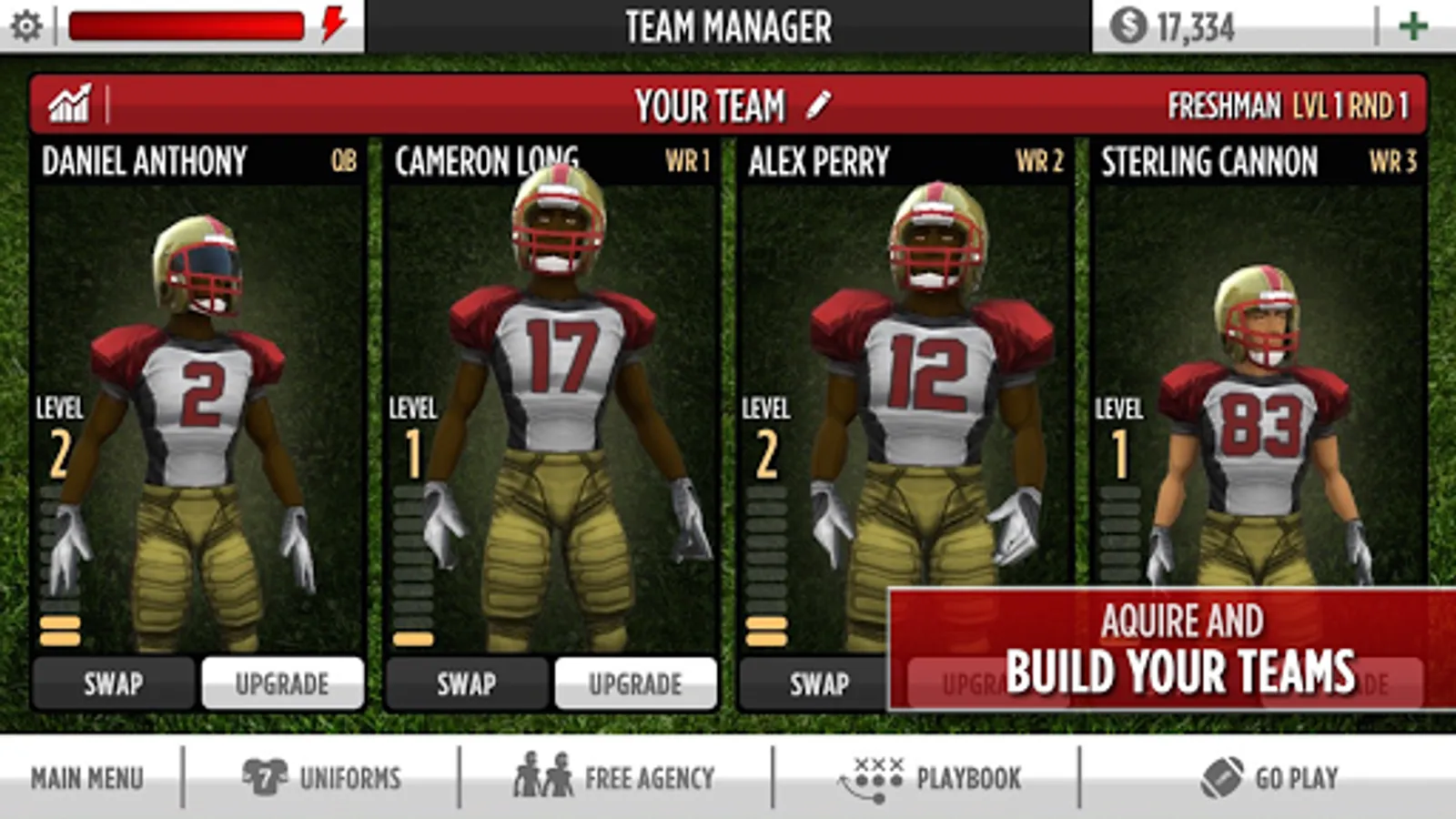 Build your team through free agency acquisitions and train your players to maximize their on-field performance!