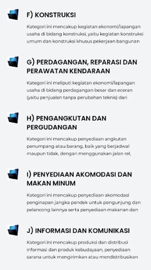 KBLI is a reference classification used to classify Indonesian economic activities / activities into several business fields / business fields, which are differentiated based on the type of economic activity that produces products / outputs in the form of goods and services.