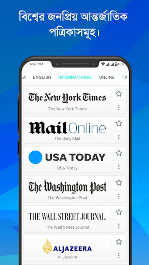 ✓ সকল ইংরেজি,আন্তর্জাতিক সংবাদপত্র ও আন্তর্জাতিক টিভি নিউজ দেখার সুবিধা
