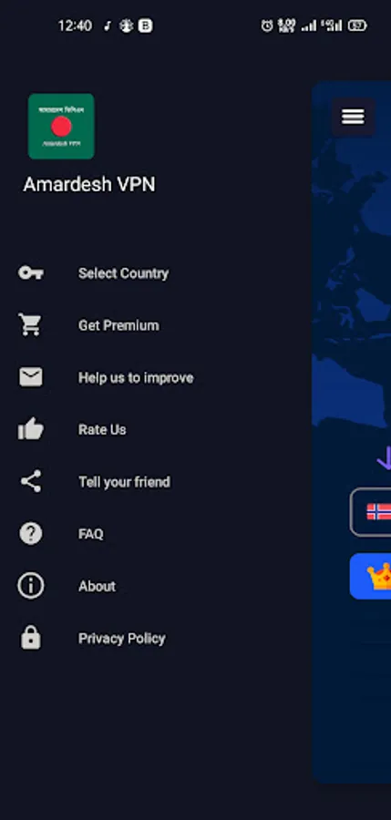 Amardesh Bangladesh VPN (Free VPN) Free fast VPN Our application working in all block country especially Arab countries. Like Dubai, Saudi Arabia, Oman, Qatar, Kuwait all GCC countries. Amardesh Bangladesh VPN app for privacy & security VPN is a lightning-fast app that provides a free VPN proxy service. No need for any configuration, just simply click one button, you can access the Internet securely and anonymously. Amardesh Bangladesh VPN (Free VPN) offers a virtual private network (VPN) that extends a private network across a public network and enables users to send and receive data across shared or public networks as if their computing devices were directly connected to the private network. Amardesh Bangladesh VPN (Free VPN) is a 100% free and unlimited VPN Proxy. You will get access to an unlimited VPN proxy service for FREE. The best unlimited Free VPN proxy client for android. With Amardesh Bangladesh VPN you can unblock sites, WiFi hotspots, firewalls, etc. Amardesh Bangladesh VPN is secure and leakproof to protect your privacy. No matter if you are looking for security on public WiFi Hotspot, you can get it all with Amardesh Bangladesh VPN. When it comes to the Internet's safety and security, Amardesh Bangladesh VPN (BD VPN) is an essential tool. It encrypts your connection so that third parties can’t track your online activity, making it more secure than a typical proxy. We have built a global VPN network included America, Europe, and Asia, and expand to more countries soon. Most servers are free to use, you can click the flag and change the server at any time you want.