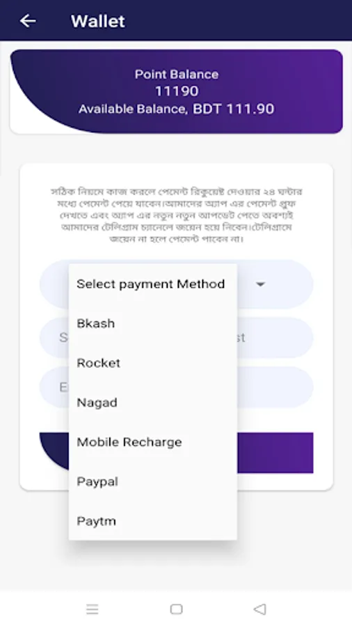 • Payment method: Bank, bKash, Rocket, Nagad, Flexilaod, etc.