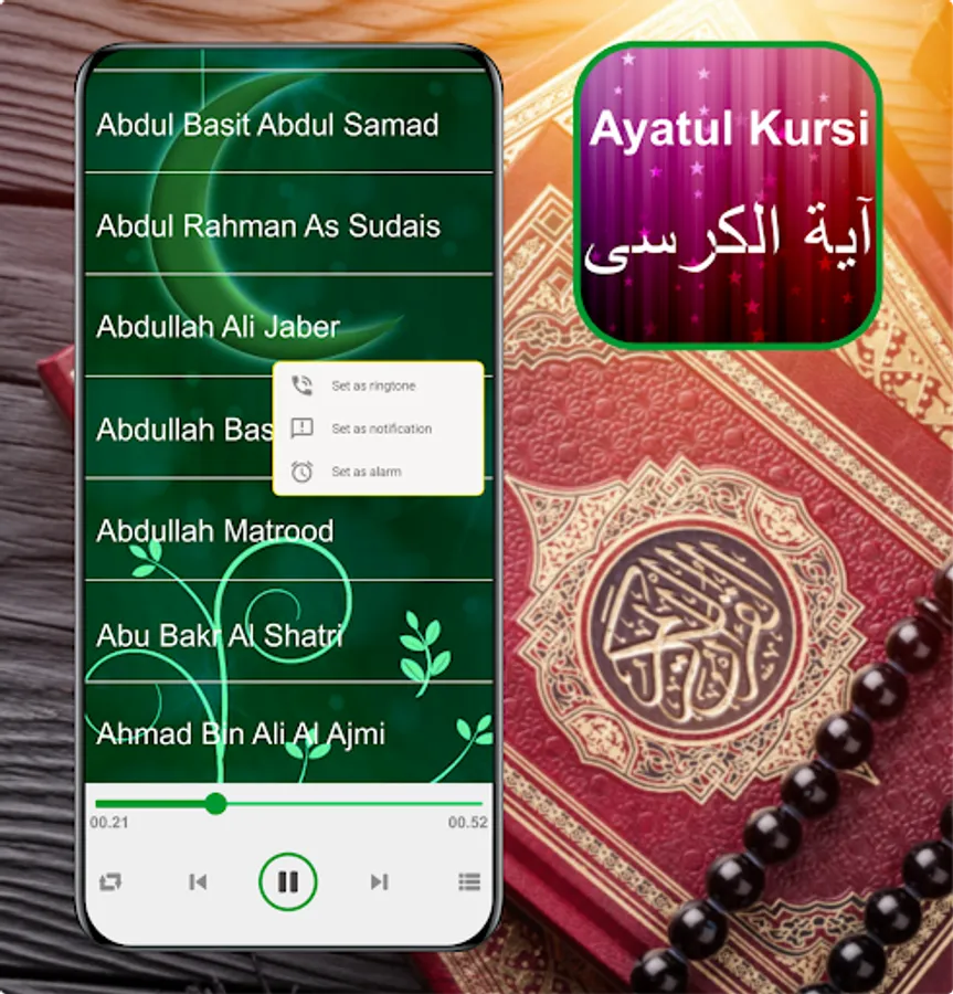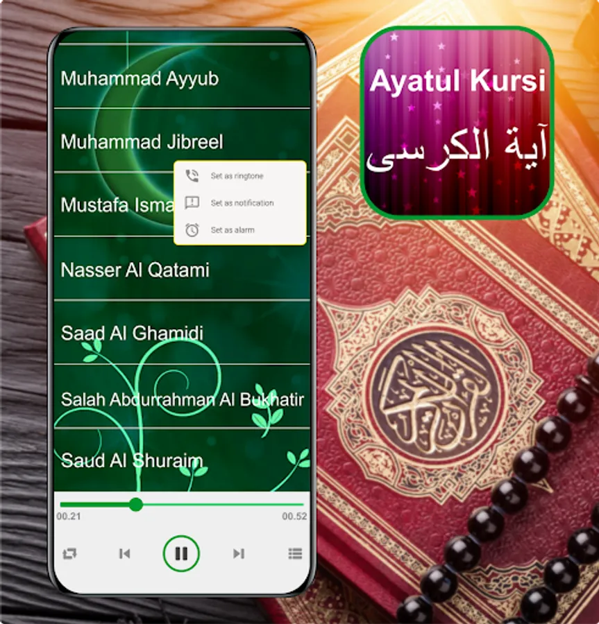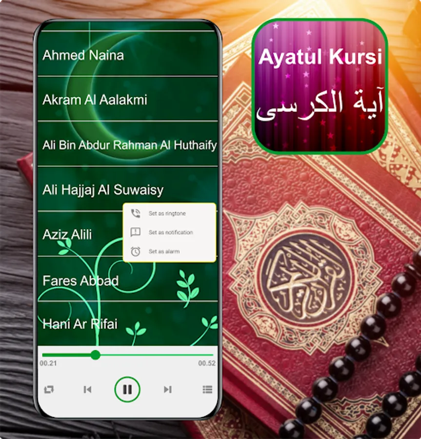 "Ayatul Kursi (آية الكرسى) or The Throne Verse" is the 255th verse of the second Surah Al-Baqara. Let's learn Ayatul Kursi in Ramadan. It is the most famous verse of the Quran. You dont need to download mp3, just install this app, you can listen to "ayatul kursi" from 32 sheikh :