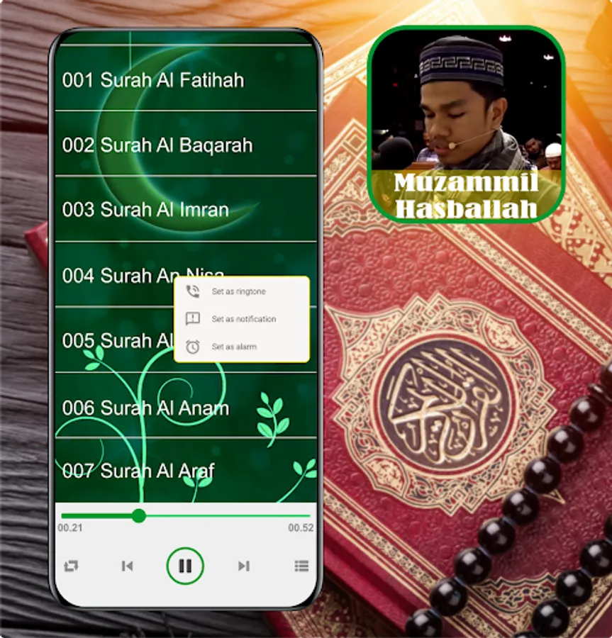 Muzammil Hasballah Mp3 Quran is an offline android application containing melodious and solemn chants of the Holy Verses of the Quran by Muzammil Hasballah in full.