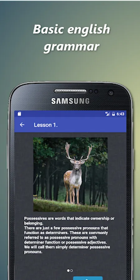 Also this app contains topics about count and noncount nouns, english grammar voice, Proper and common nouns, identifying verbs, the verb base, action verbs and linking verbs, phrasal verbs. Learn english course. Articles and demonstratives.