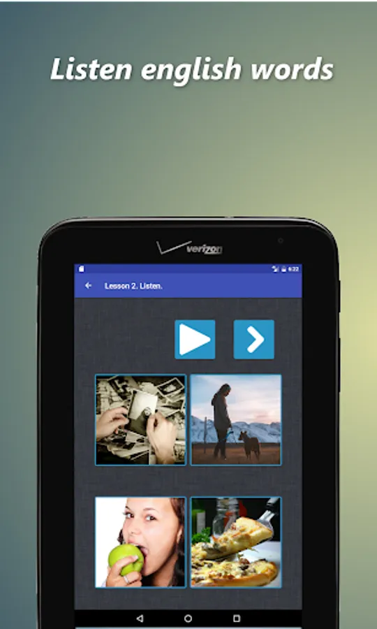 English phonetics and phonology. You can study in two ways. First type is to say the word from picture. Second training type is to listen english word and find it on the pictures. Two types of learning will help you to easy recall this word later. English learning books free.