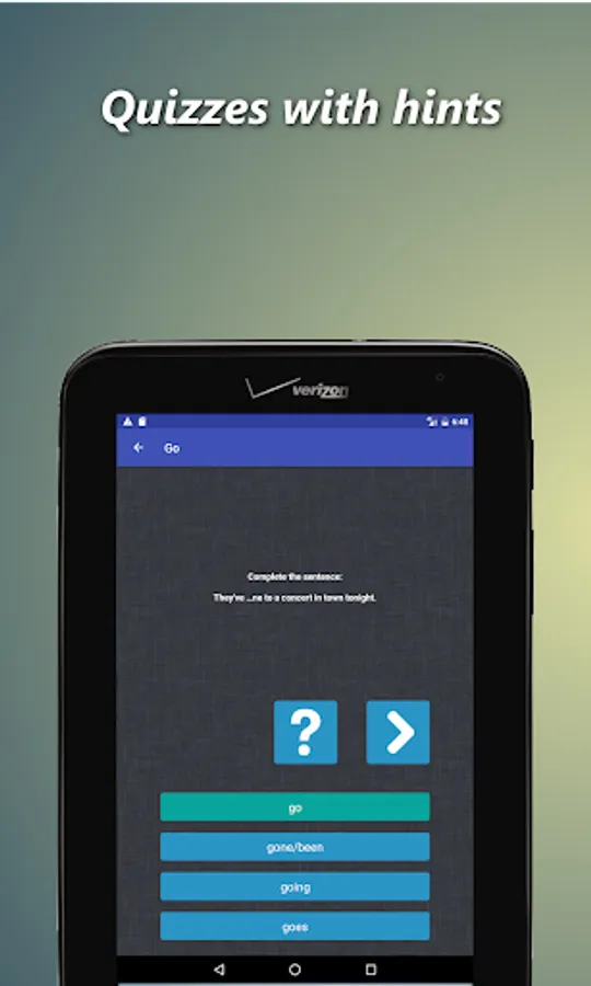 In this application you will be able to learn common English verbs and their conjugations. Learn english intermediate. During the training you need to choose the correct option from the list.
