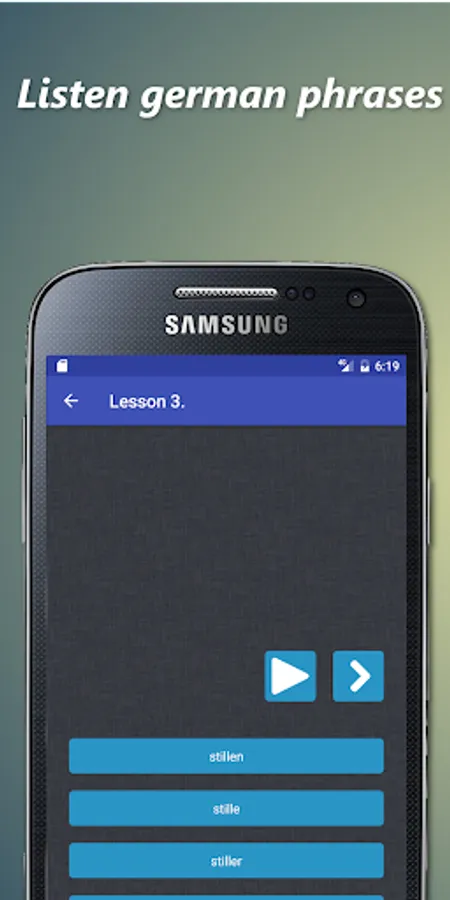 In this application you will be able to learn and listen common German words. During the training you need listen german phrase and choose the correct answer from the options.
