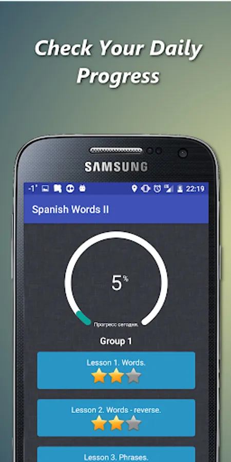 Application doesn't have any limits for words and phrases studying. You can remember all phrases many time during the day. Spanish language teacher.