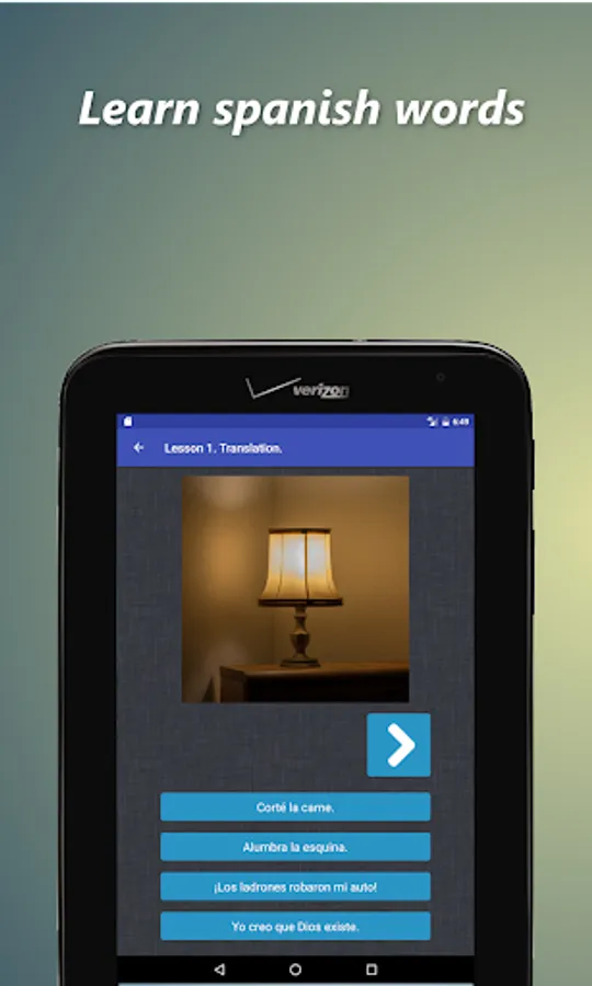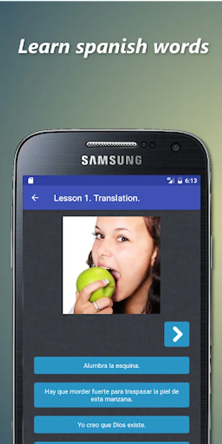 In this application you will be able to learn 300 common Spanish phrases. Learn conversational spanish free. During the training you need to choose the correct translation from the options.