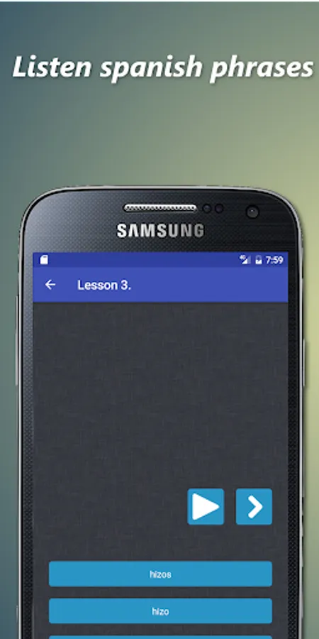 In this application you will be able to learn and listen common Spanish words. Audio spanish lessons free. During the training you need listen spanish phrase and choose the correct answer from the options.