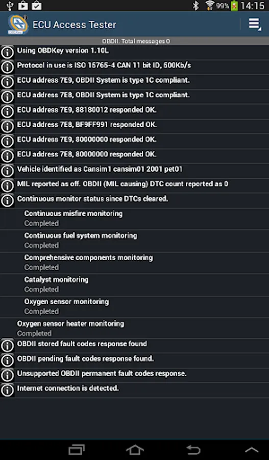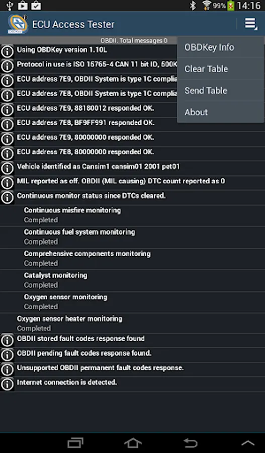 Useful application to test out the OBD system of your car using an OBD Bluetooth adapter. The OBDKey hardware unit is preferred, but other ELM327 based Bluetooth adapters work too.