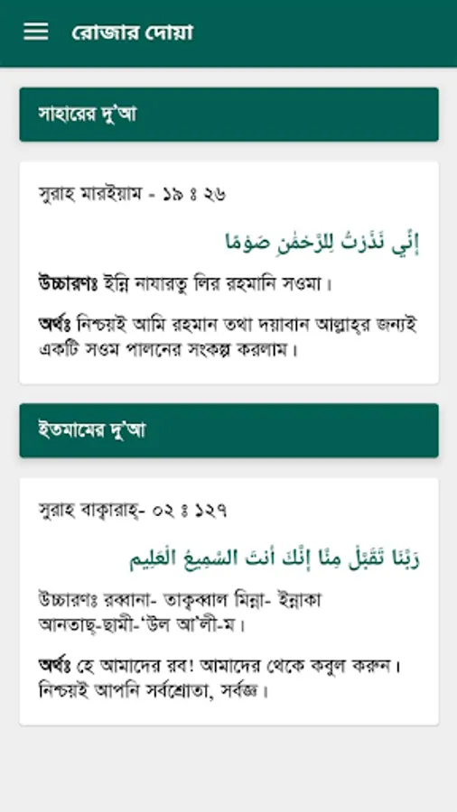 5. Dua for sehri and Ifter with recitation audio play button.