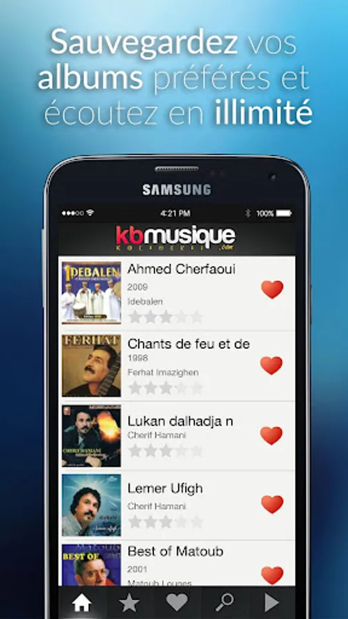 Azul, welcome to the first application of 100% Kabyle music. Taqvaylit (Berber) is a very common language in North Africa and in many countries such as Algeria, Morocco or France. With an estimate of about 5 million speakers in Kabylia and nearly 9 million worldwide, Kbmusique key a great people. Kabyle is therefore the second Berber dialect speaking after Chleuh in southern Morocco. Admittedly Kabyle music (Dz Algeria Music Mp3) is to be a very important part of culture but especially the Kabyle identity. We find great singers who have sacrificed their lives to the Kabyle identity as the great rebel Matoub Lounes, Slimane Azem, yahyaten Akli Ait Menguellet, Nouara, Takfarinas, Idir, Cheikh El Hasnaoui Mohamed Allawa list ... is endless with these talented singers who were able to enhance the Kabyle song by truthful texts that address topics from everyday life in Kabylia. Kbmusique Kabyle contains a catalog of the richest on the net, you can listen to the old Kabyle music at will and for free on various mobile and web platforms.