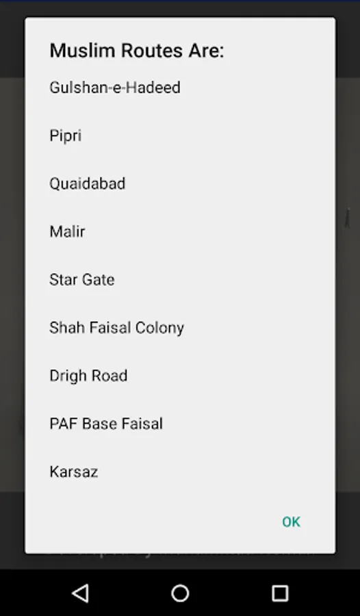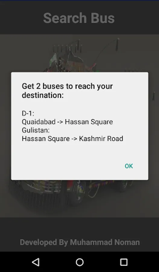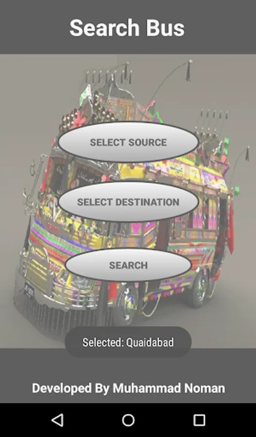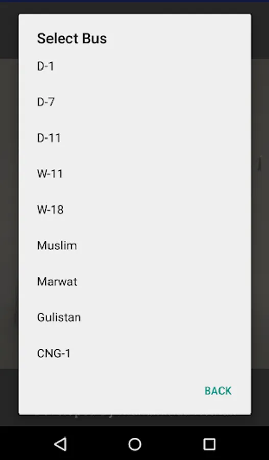 An app through which Karachi citizens can find name of the buses which travels between any two locations by just selecting the source and destination locations. Moreover, the application has another feature that it also shows the routes of a particular bus like D1, D7 and W11 etc. Another feature includes Google Map which detects your current location and you can find your nearest bus stops as well.