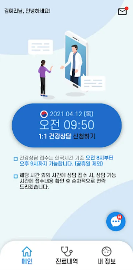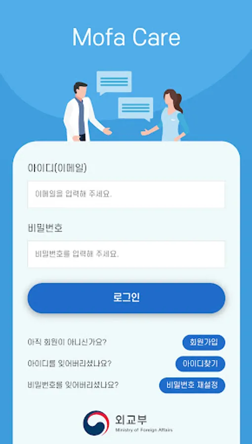 Non-face-to-face medical consultation app for diplomatic missions abroad that can receive health consultation, chat consultation, non-face-to-face video treatment, and family representative registration