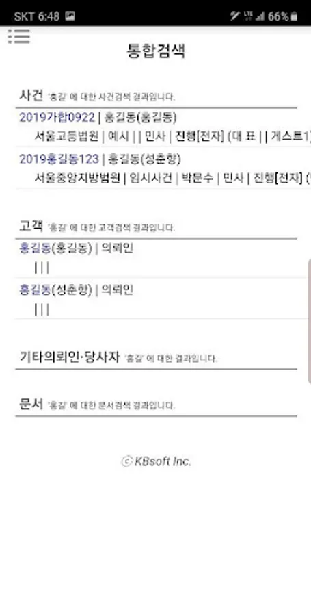 v 기타의뢰인·당사자내역 무제한 입력 및 재무권한에 의한 수금·제경비 관리 기능