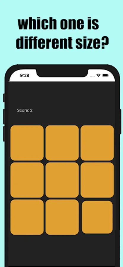 This is a puzzle game where you have to touch and guess the only shape that is different in size from the multiple shapes lined up.