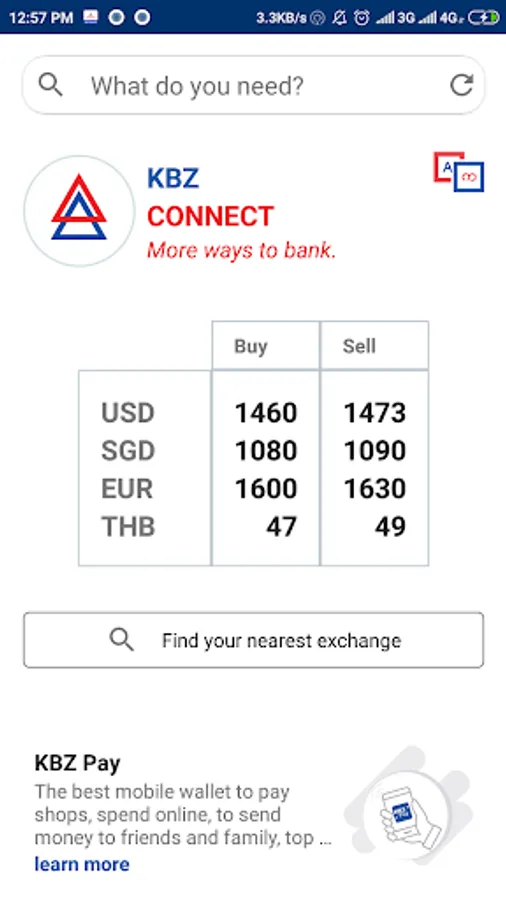 KBZ Connect app will help you to find out all KBZ touchpoints (ATM, Branch) easily and efficiently.