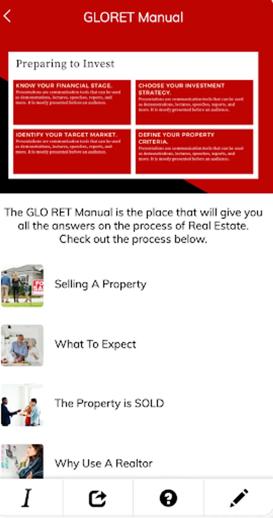 GLO RET bridges the gap between real estate investors and wholesalers. Investors will finally have the opportunity to browse through off-market deals from various wholesalers under one centralized marketplace.