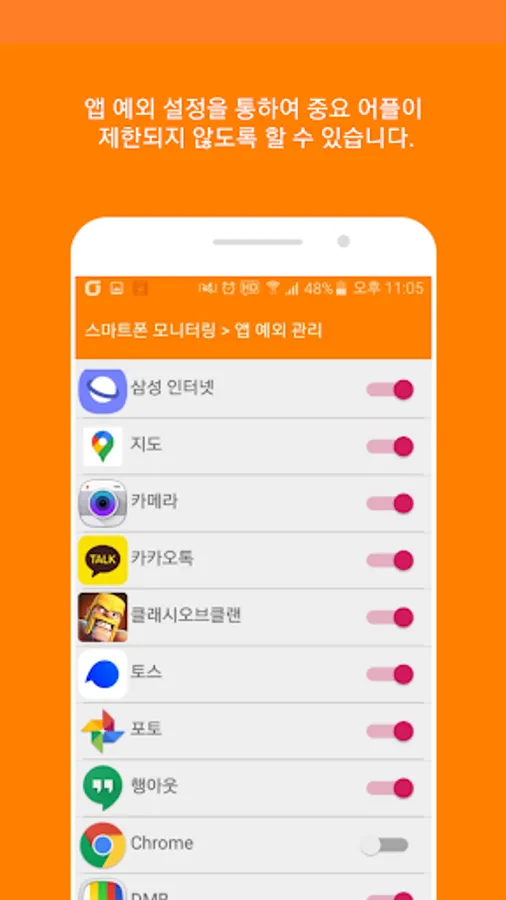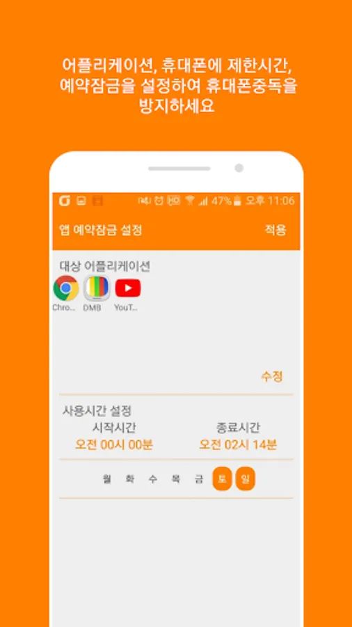 Application usage time limit: If you use a specific application for more than a certain time, it restricts you from using the application. You can limit the sum of the hours of use of certain applications (e.g., if the sum of YouTube and App Store is more than 3 hours, you can disable both apps).