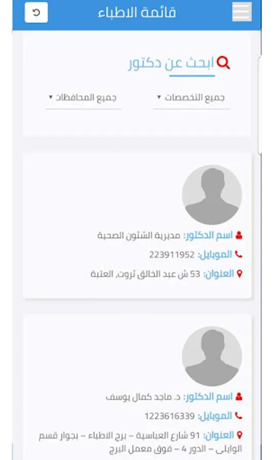 - Presentation of a database of doctors and health directorates in the governorates of Egypt
