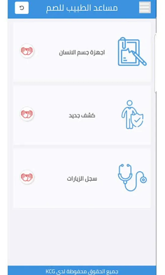 The goal of the application is to help the deaf to communicate with the doctor during the visit of the deaf to the clinic where it helps to solve the problem of communication between the doctor and the deaf in the clinic during the diagnosis in the sign language and helps the deaf in keeping the record of visits of doctors with pictures of the reports and analyzes to be a reference to him. It also contains general information about human body equipment and the specialties of doctors translated in sign language as well as database of doctors and health centers in Egypt.