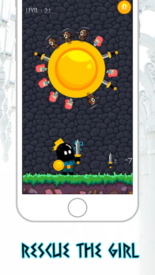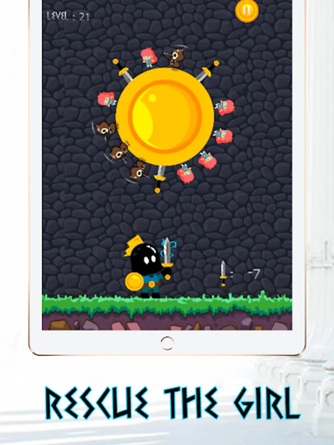 Knight's Sword is a really cool game to play, you have to shoot the sword and hit all the bad guys avoiding the girl. Try to rescue the girl but do not forget your Swords are limited by level. Tap and hit all the bad guys in order to pass to the next level.