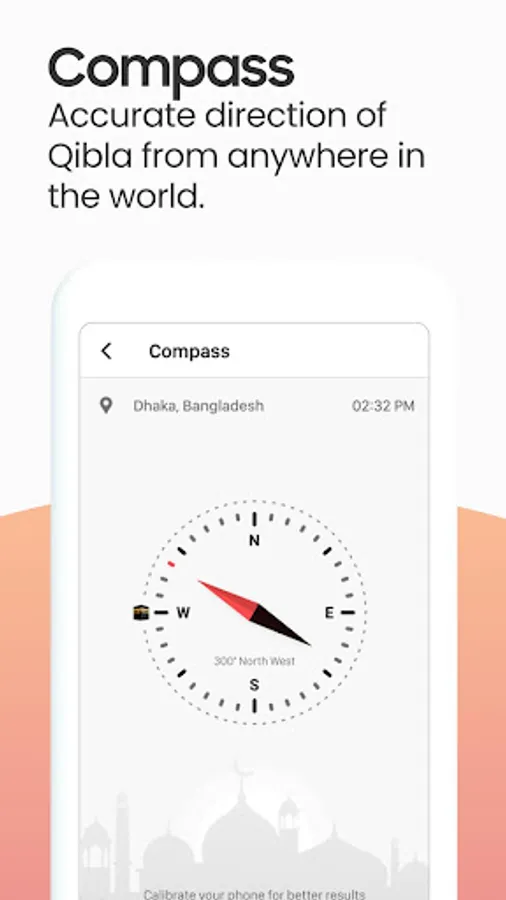 • Qibla compass to get the right direction of Mecca.