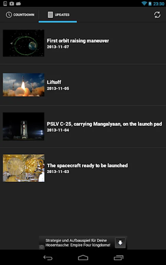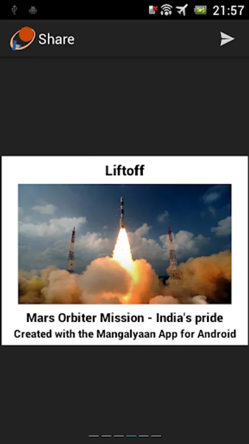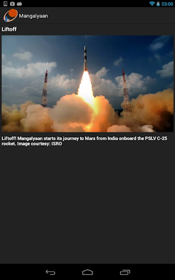 Mangalyaan, officially known as the Mars Orbiter Mission, is India's maiden mission to the Mars. It is the the first interplanetary mission by ISRO (Indian Space Research Organization). Use this app to follow the mission. More information about the mission will be added in future updates.