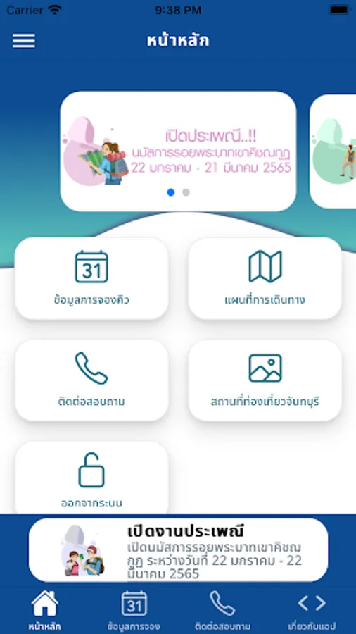 An application for booking a queue to worship Khao Khitchakut's footprints Chanthaburi Province To reduce congestion and limit the number of pilgrims who will worship the Buddha's footprints. Which can apply for membership and log in to choose the desired date and time range. This application is a result of the collaboration of Khao Khitchakut National Park and Rambhai Barni Rajabhat University. with support from the car queue up to Khao Phra Bat Khao Khitchakut