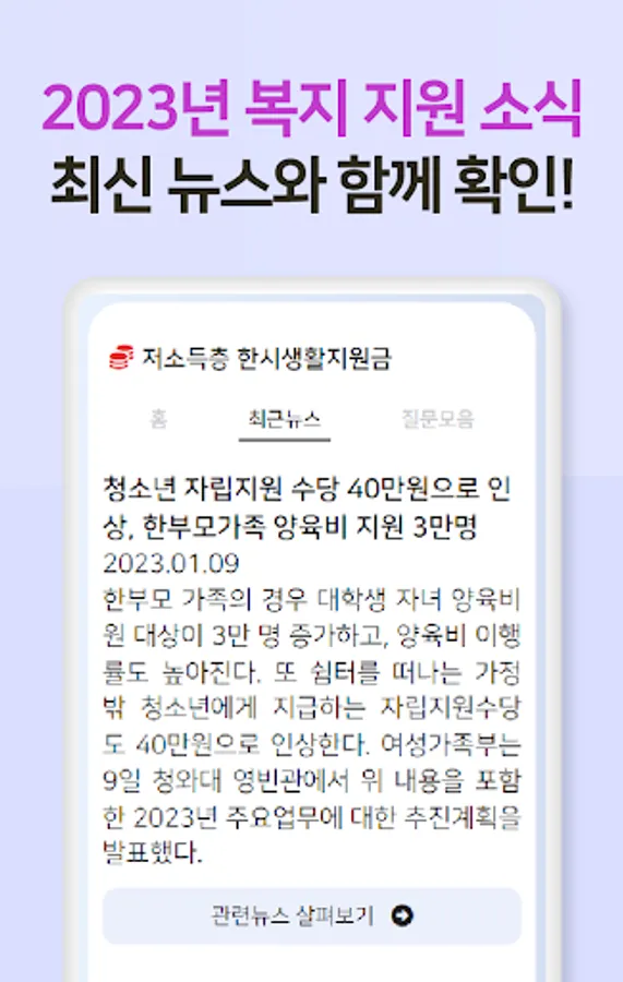 ○ You can read the latest policies and news related to welfare support news such as living subsidy
