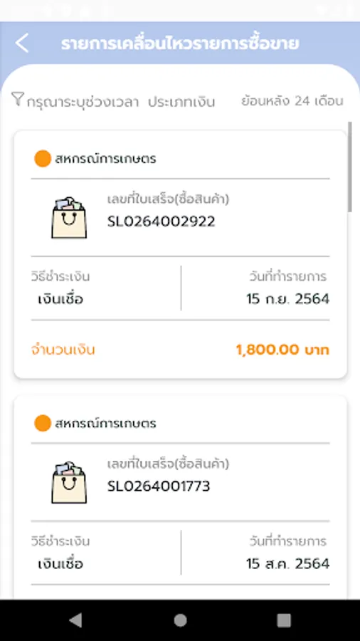 - ดูข้อมูลรายการซื้อขาย