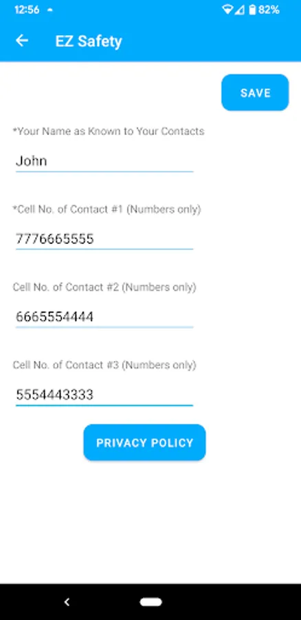 You can specify up to 3 cell phone numbers for your contacts. The contact info stays on the your phone and won't be shared with anyone.