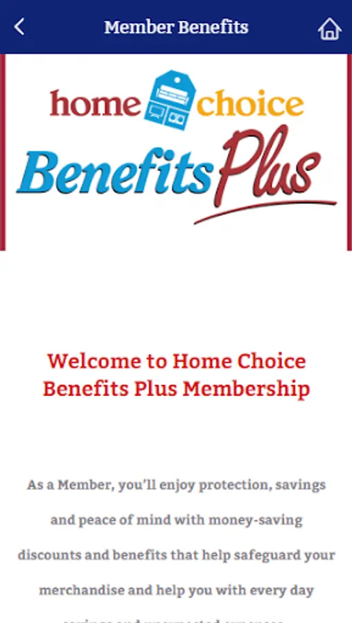 The Home Choice Benefits Plus app is designed to facilitate membership benefits of customers of Home Choice Benefits Plus who have joined the Home Choice Benefits Plus club program. The app will help connect users/customers with their benefits on a secure login site, as well as provide valuable information about the program and the benefits they are entitled to and can utilize.