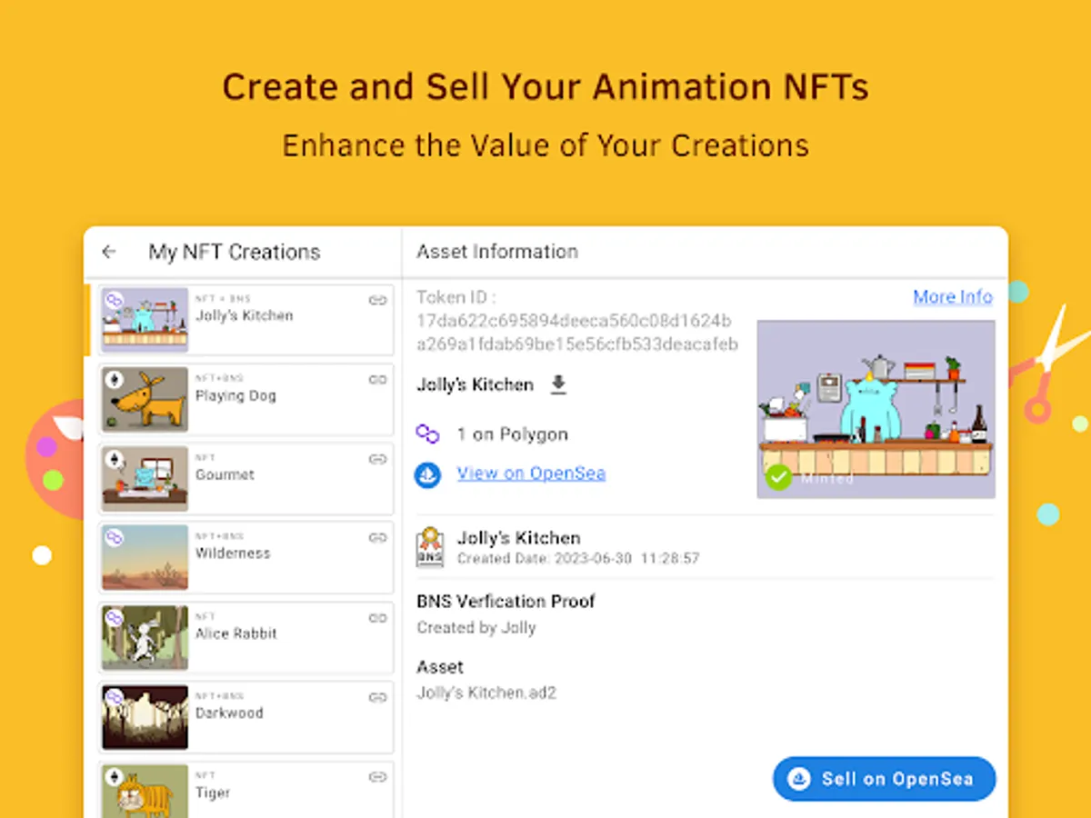 • Mint NFTs, generate BNS verification proof, and list your NFTs on OpenSea