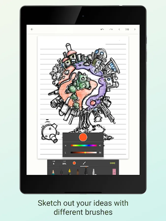 + 6 essential brushes including pencil, crayon, ink brush and fountain pen, etc
