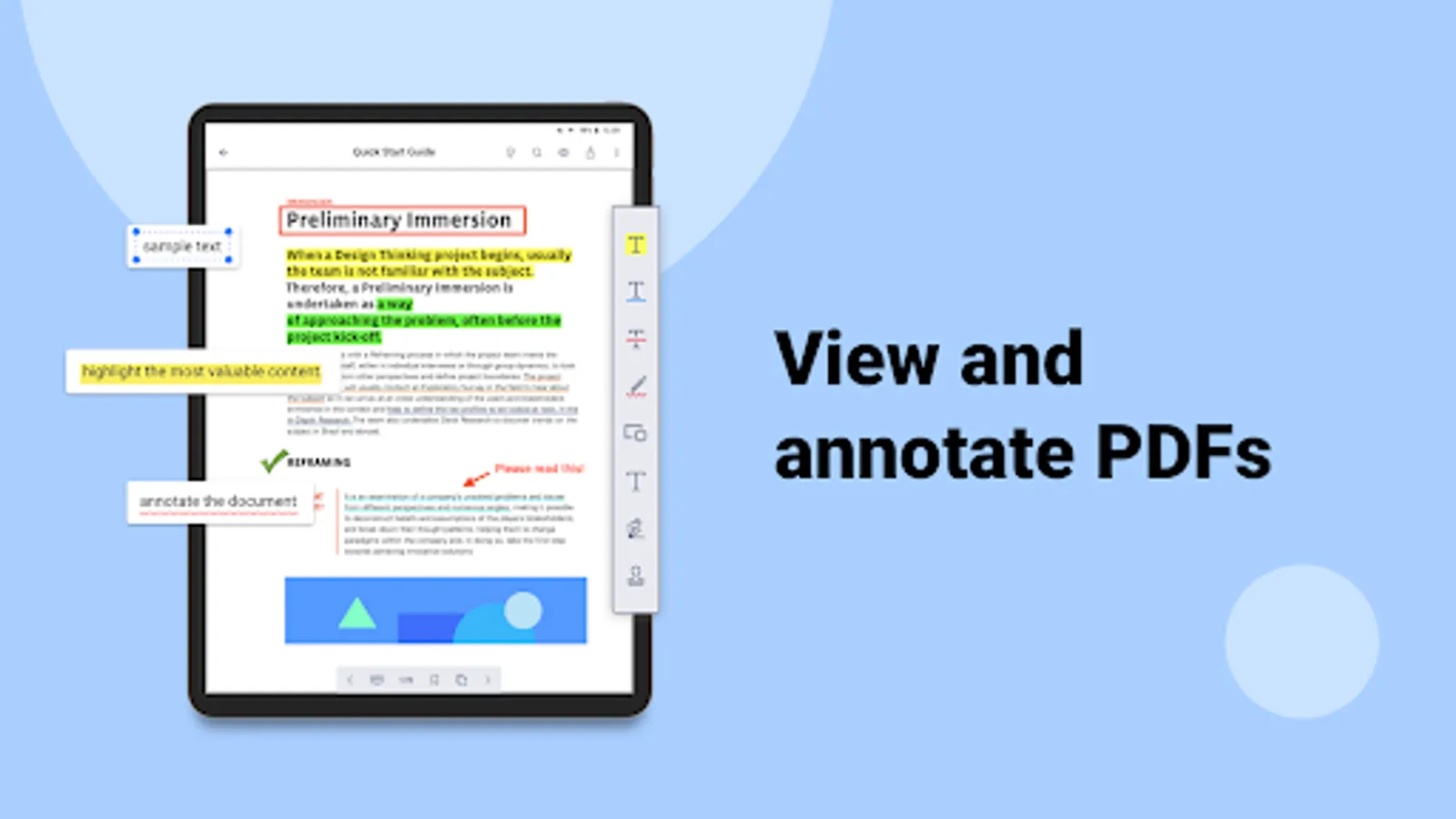 • Insert shapes and text boxes to PDFs