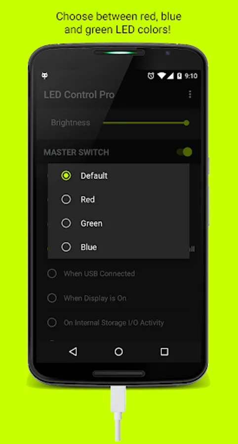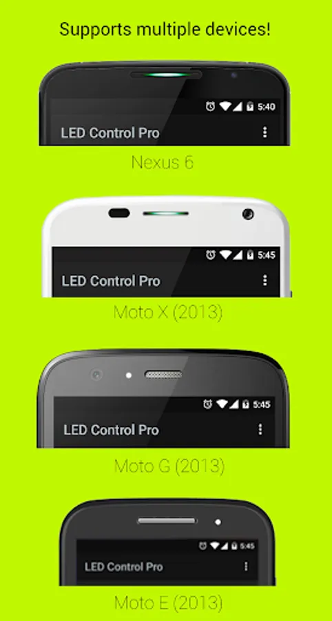 · LED Color: Choose between 3 LED colors if your device supports it (Nexus 6, Droid Ultra, Moto X). Available in Pro version only.