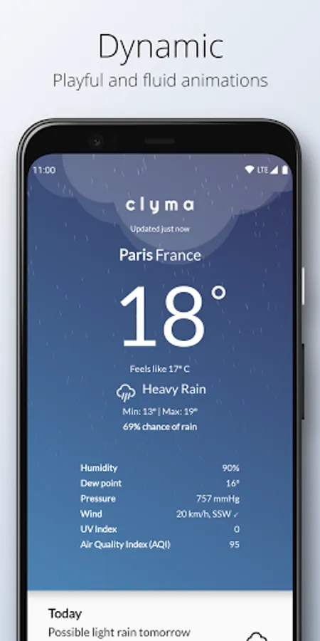 Bold colours and dynamic animations for every weather condition for a pleasant surprise every time you check the weather