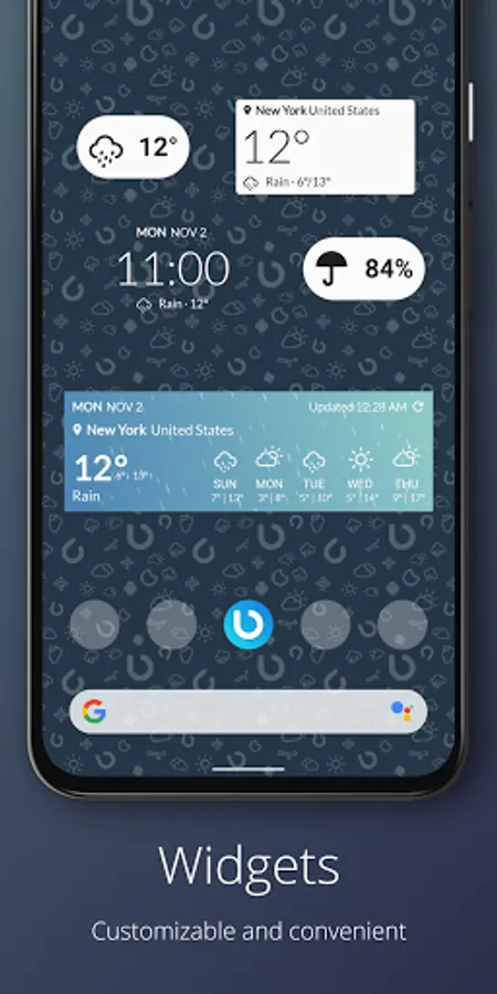 Choose from 5 different homescreen widgets to get the latest accurate weather right on your homescreen, customized to your heart's liking