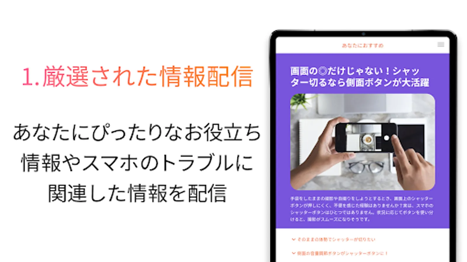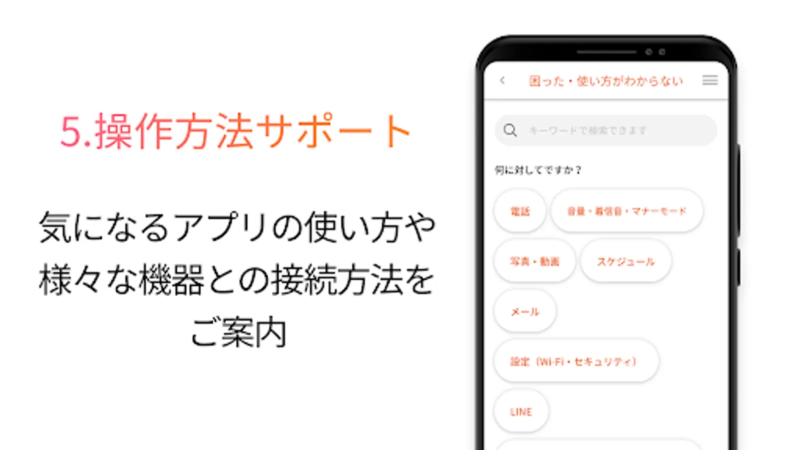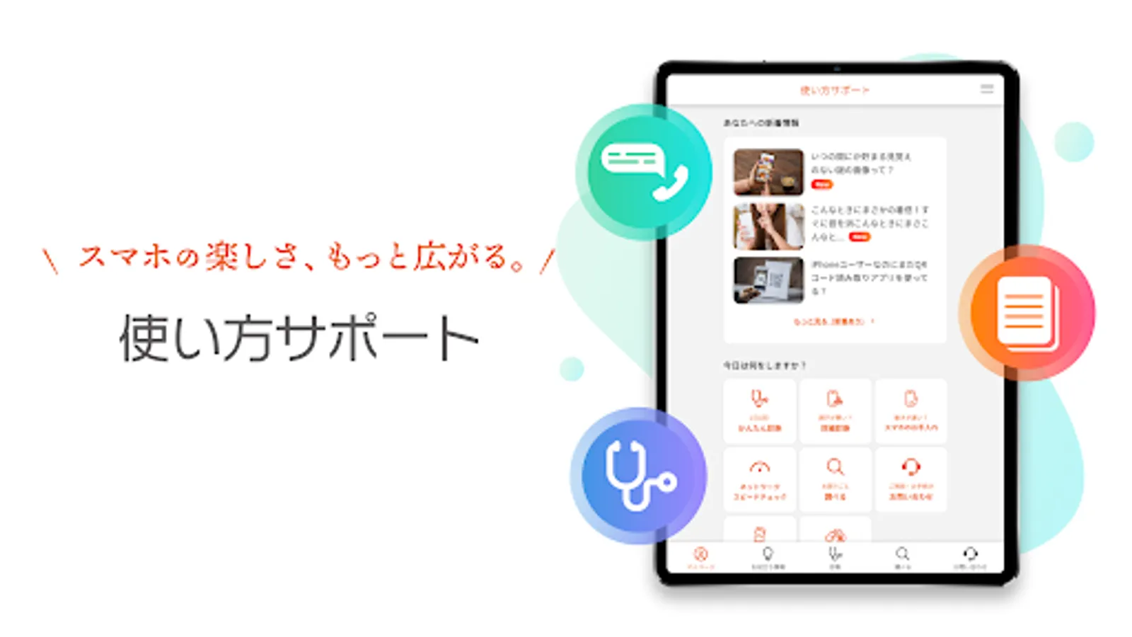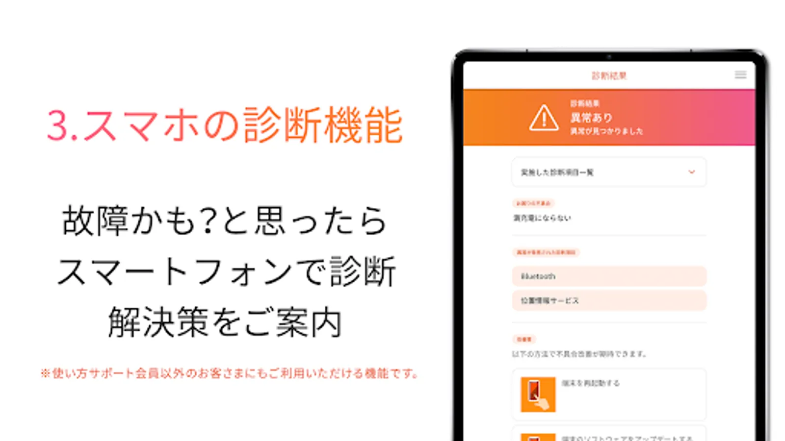 ・Easy diagnosis of smartphone symptoms and malfunctions, etc., and guidance on solutions in an easy-to-understand manner
