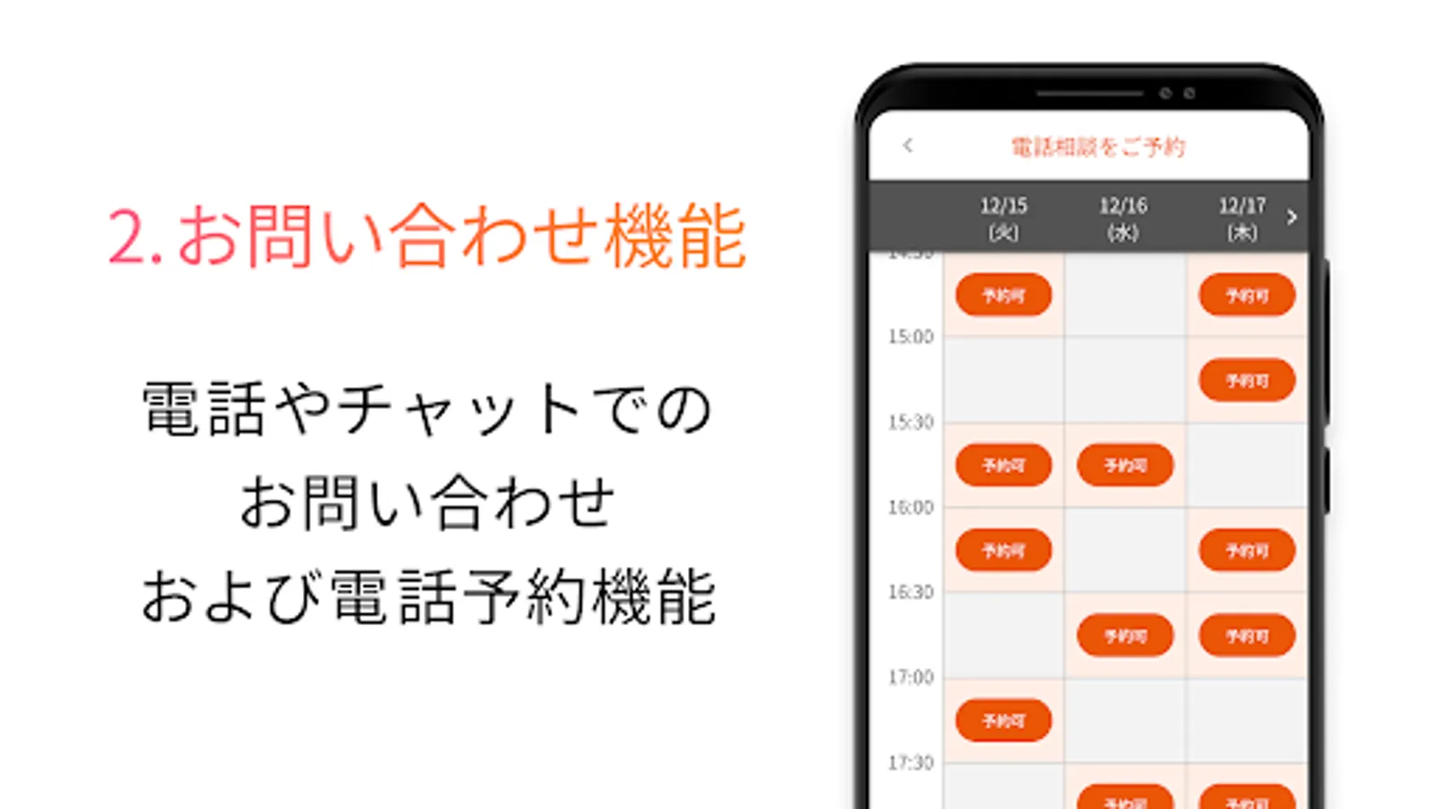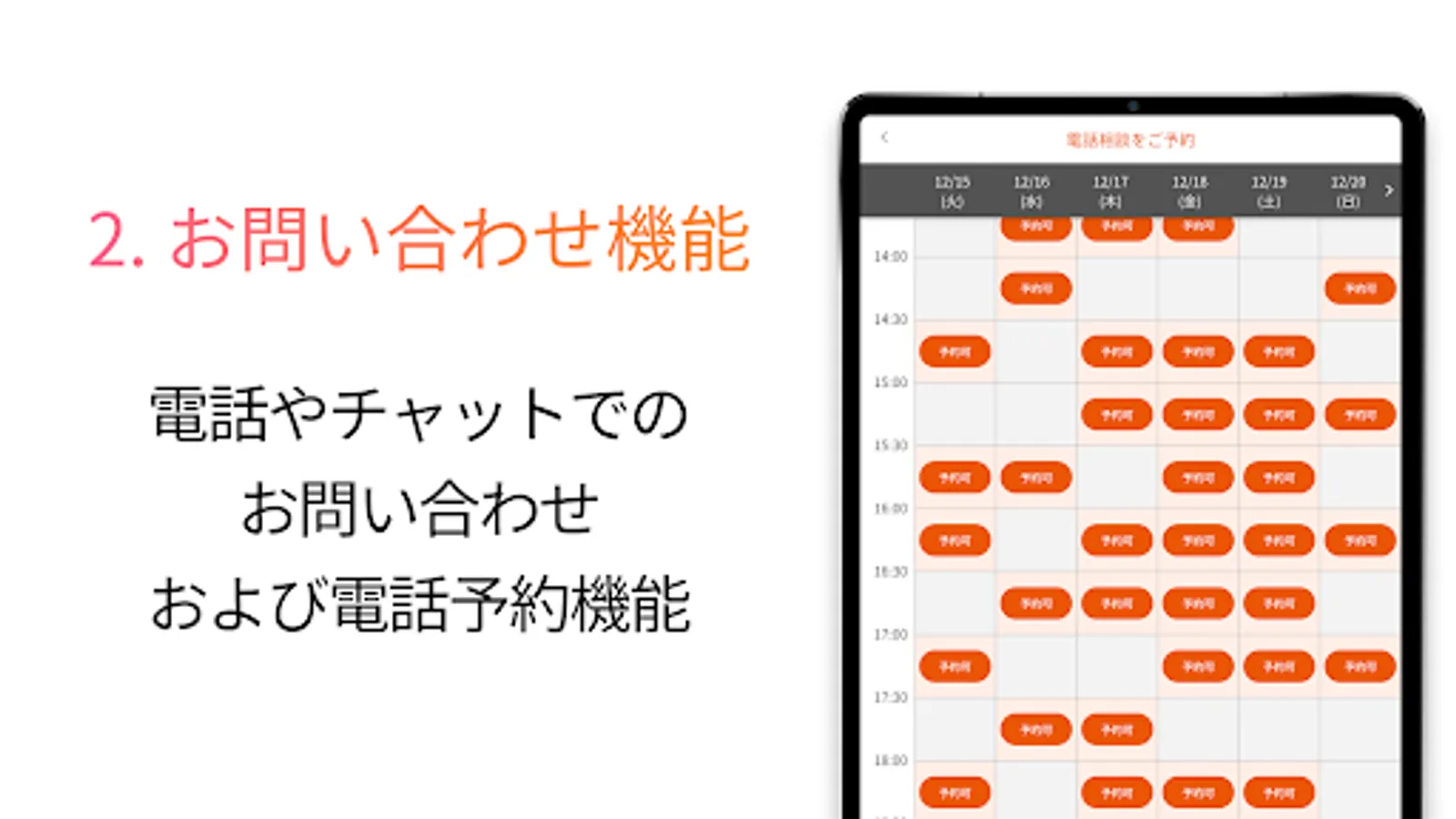 ・ Inquiry function by phone or message and reservation function for telephone inquiries