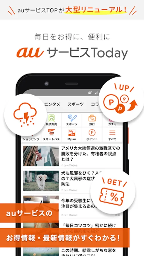 Not only information necessary for daily life such as news, weather, transfer information and fortune-telling, but also convenient, profitable and fun functions such as shopping and contents that collect points are all in one app.