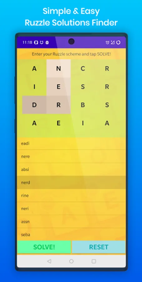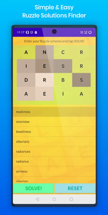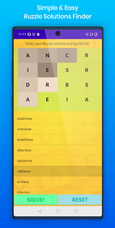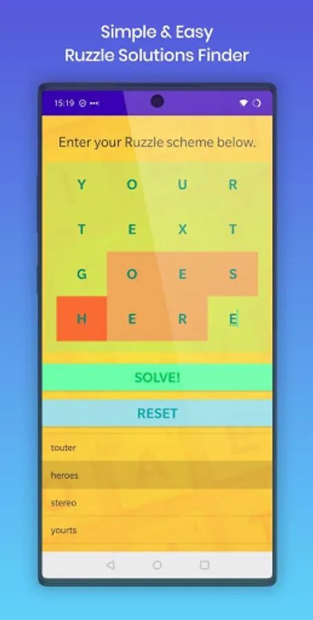 1. Insert the letters of your 4x4 Ruzzle grid in the 4x4 RuzzleSolver grid.