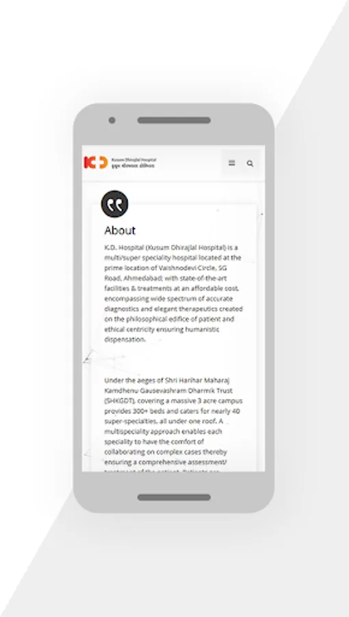 We, at KD Hospital are focussed to ensure the ëWell-beingí of the patients, which is assured by extension of Available, Accessible, Affordable, Safe, Efficacious, Professional and Ethical comprehensive healthcare through state of the art facilities. We provide the cutting edge technology and backed by the best team of most eminent and experienced doctors of the world who are authorities in their respective fields of specialisation. Discover everything that you would want to know more about us through this app. This app is an effort to consolidate all our Social Media content & present it to our followers at one place with a click of a button.