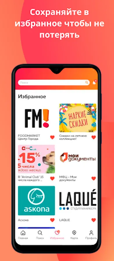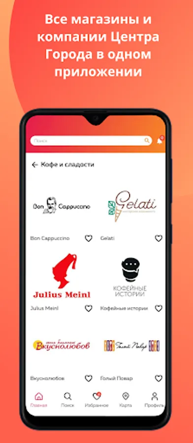 Add to the category "Favorites" the shops, services, restaurants, promotions and news that interest you.