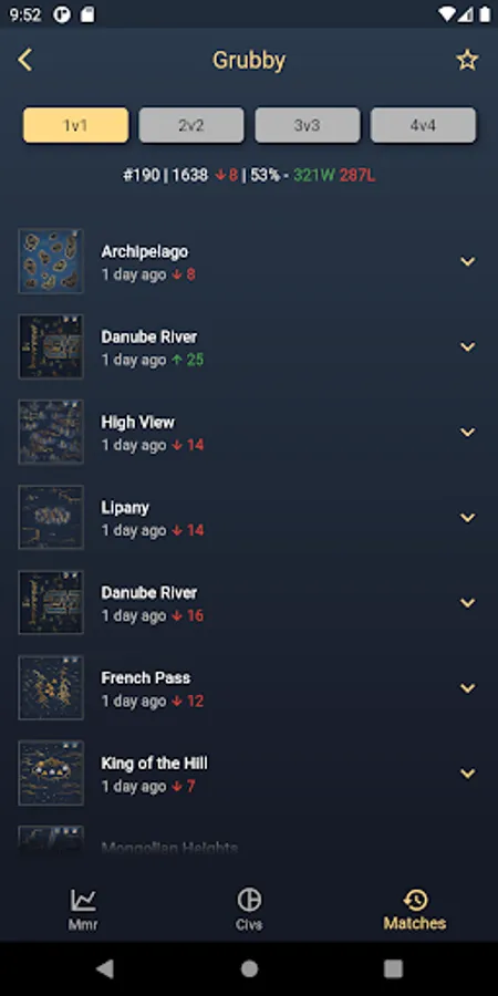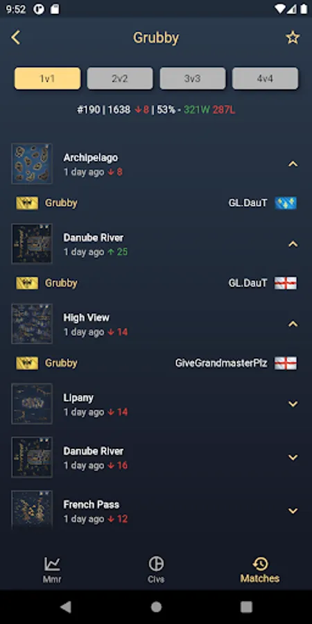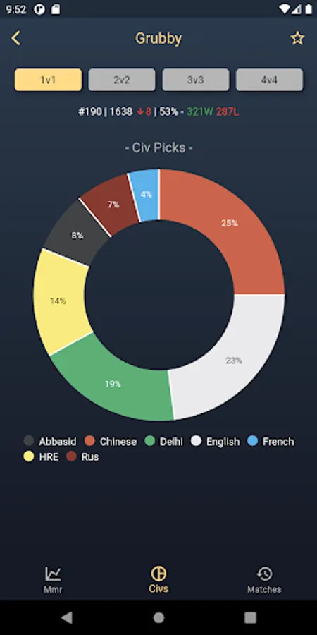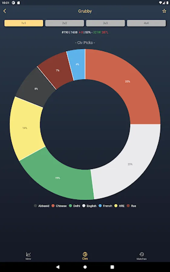 You can also check the players favorite civ picks in the respective game modes. Additionally you can check a players match history.