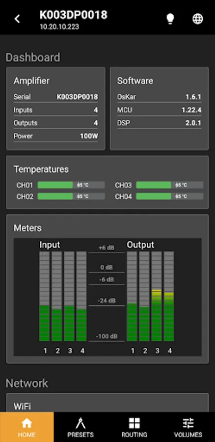 Use your mobile device (smartphone or tablet) and connect it Wi-Fi to K-array KS and KA amplifiers with DSP: launch K-array Connect to manage the output configuration, load the loudspeakers presets, design the signal routing, control audio level and monitor the system performance.